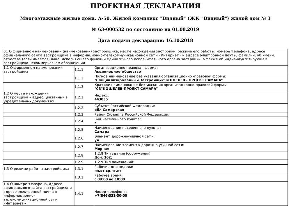 Проектная декларация (ЖК_Видный) жилой дом №3 редакция от 01.08.2019г.