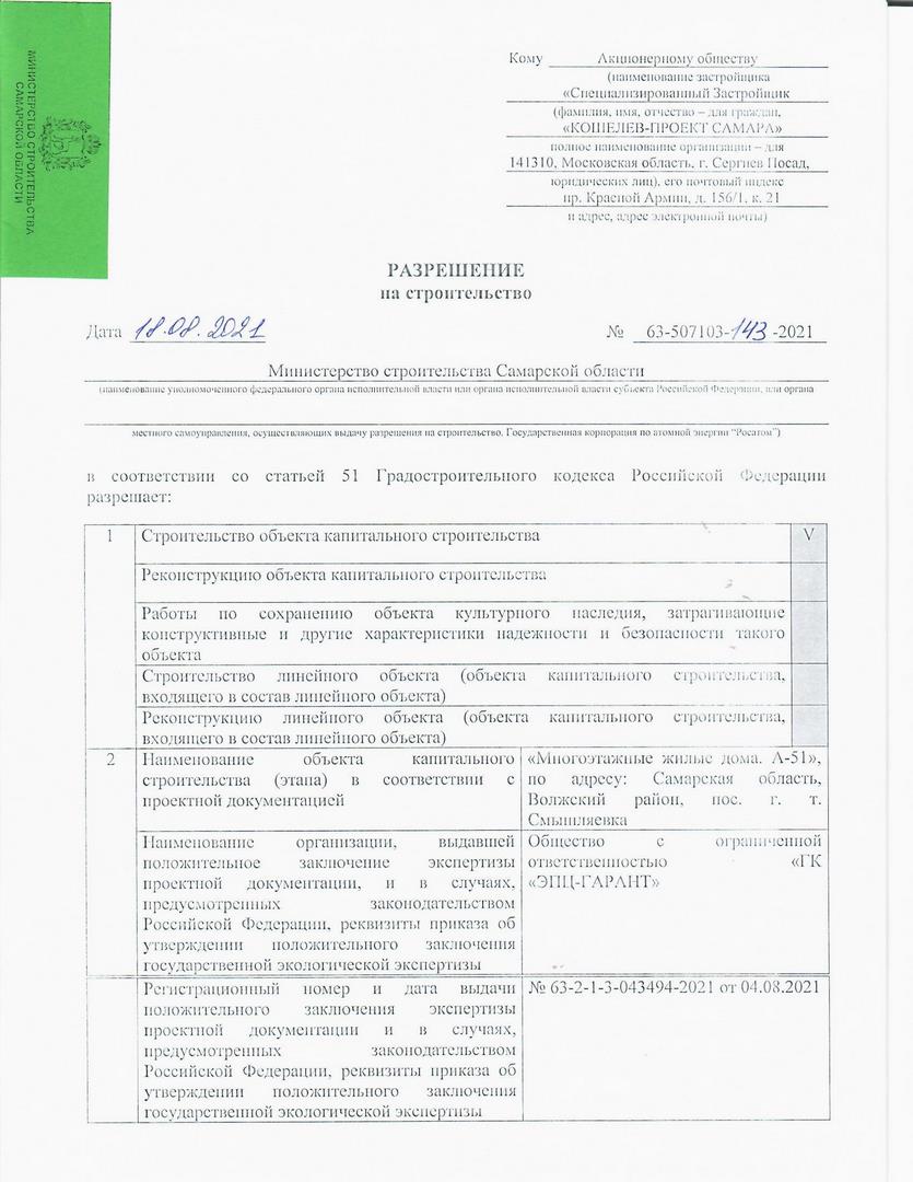 Объект "Многоэтажные жилые дома, А-51" (ЖК "Видный-2")