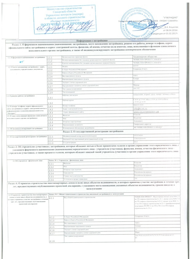 Проектная декларация КОШЕЛЕВ-ПРОЕКТ, малоэтажные жилые дома А-27 от 08.04.2016 в редакции от 01.02.2017, ответственный за размещение Целиков М.Ю.