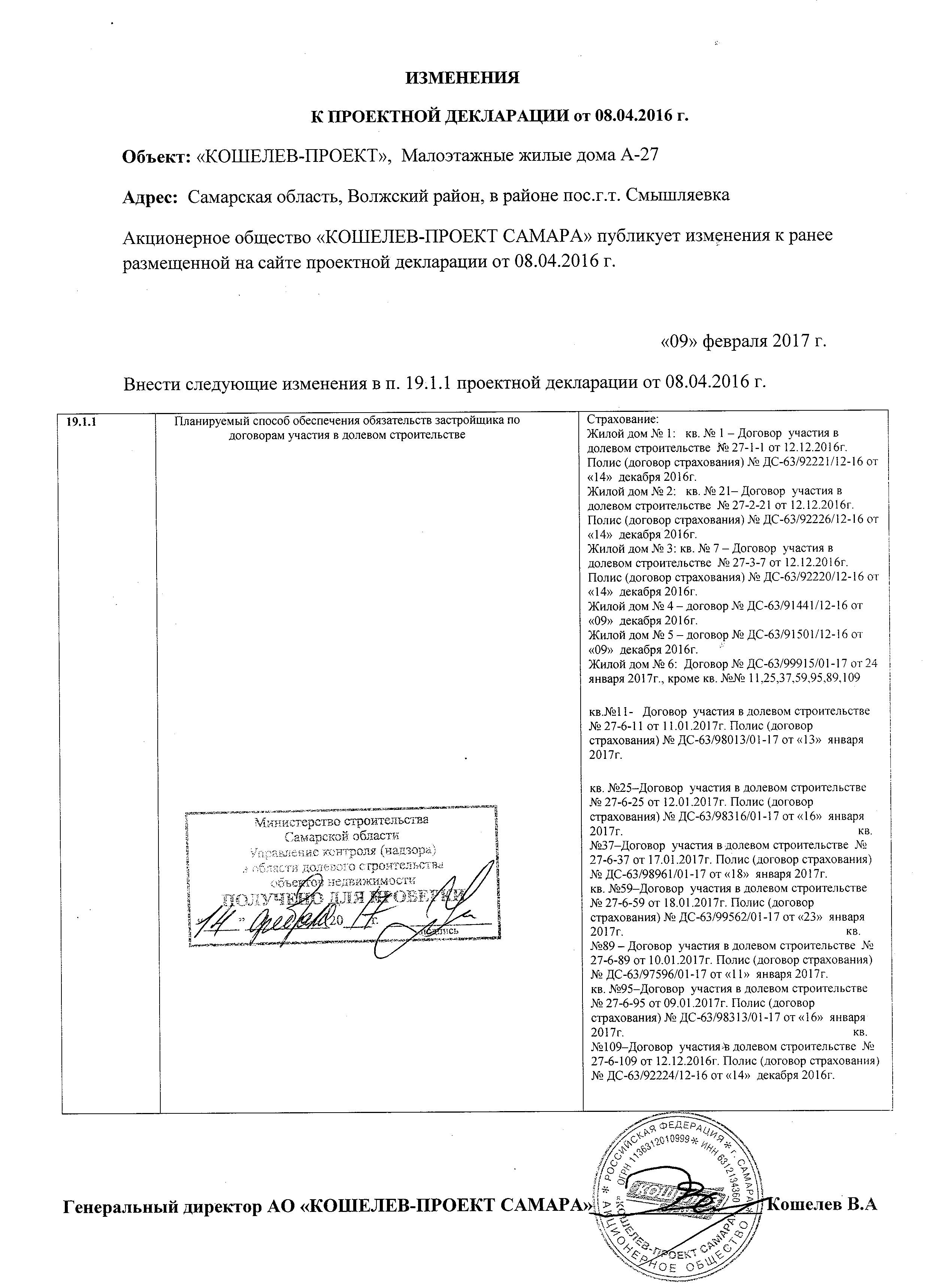 ИЗМЕНЕНИЯ К ПРОЕКТНОЙ ДЕКЛАРАЦИИ от 08.04.2016г. в редакции от 09.02.2017г.