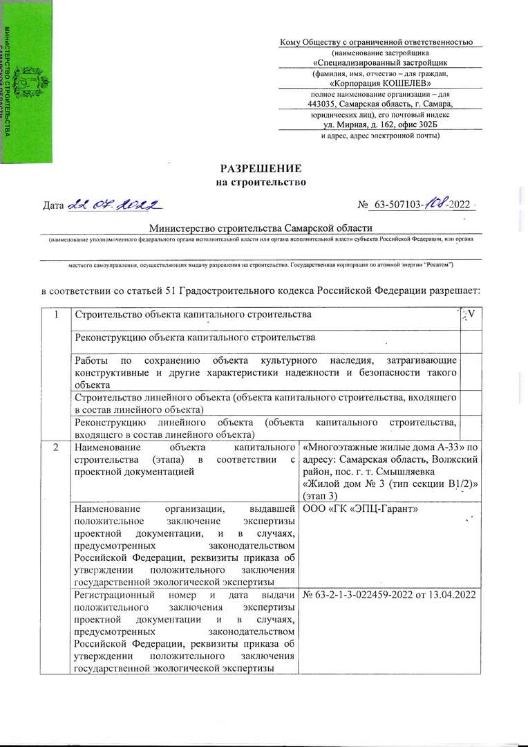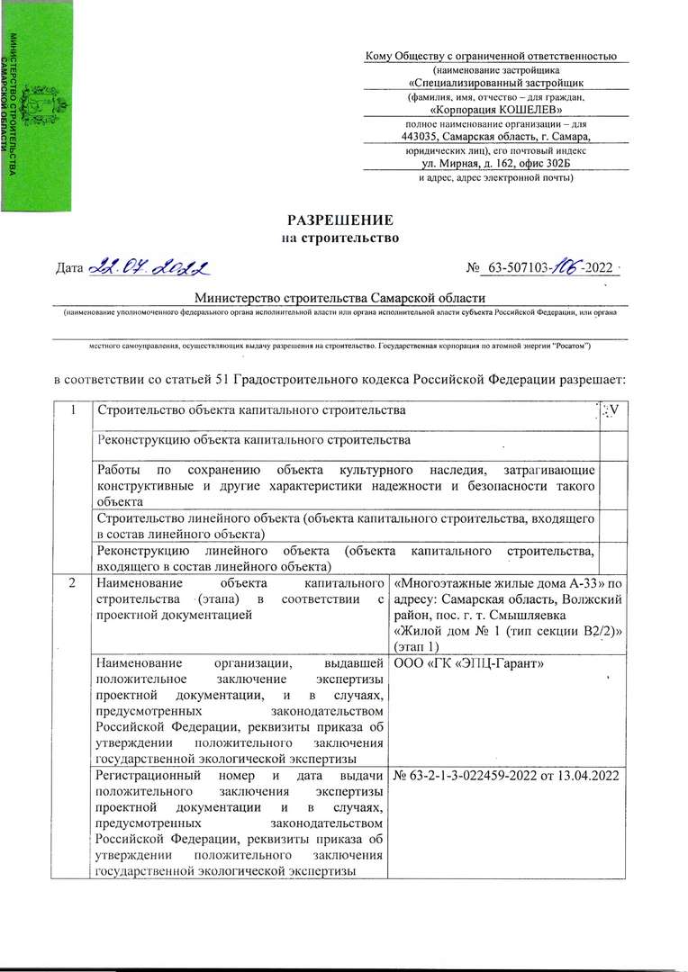 Объект "Многоэтажные жилые дома, А-33" (ЖК "Перемена")