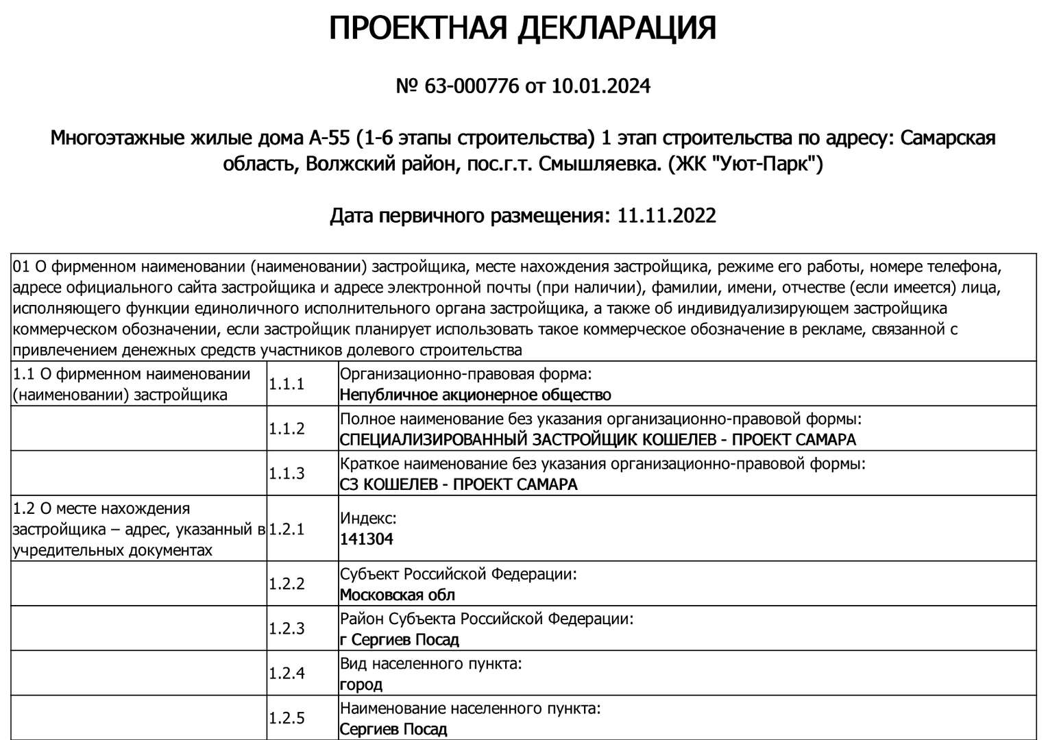 Проектная декларация "Многоэтажные жилые дома А-55.1" (ЖК "Уют-Парк")