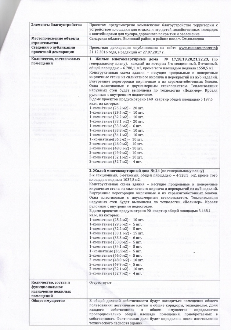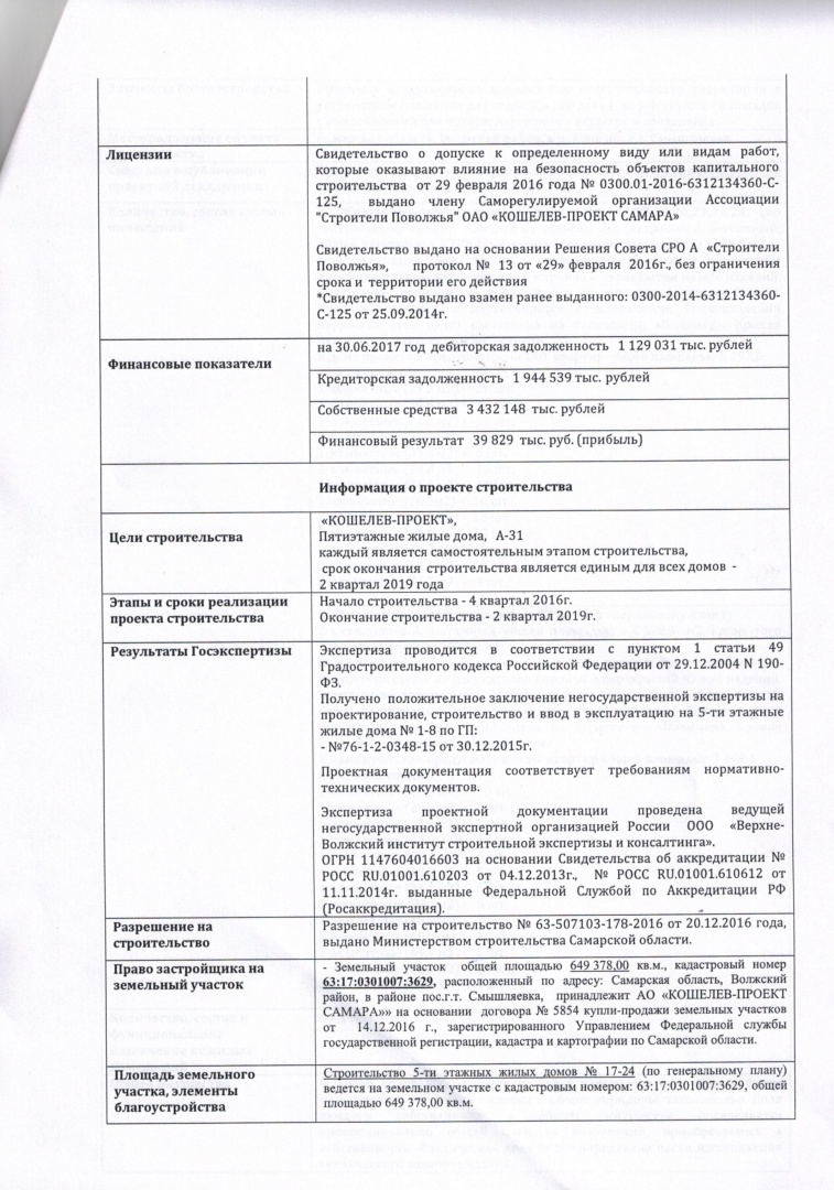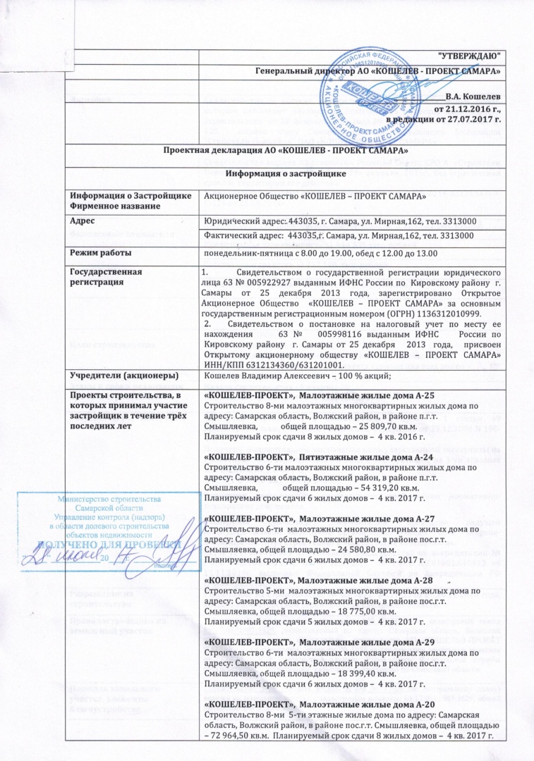 Проектная декларации объекта "КОШЕЛЕВ-ПРОЕКТ", А-31, от 21.12.2017г. в редакции от 28.07.2017г.