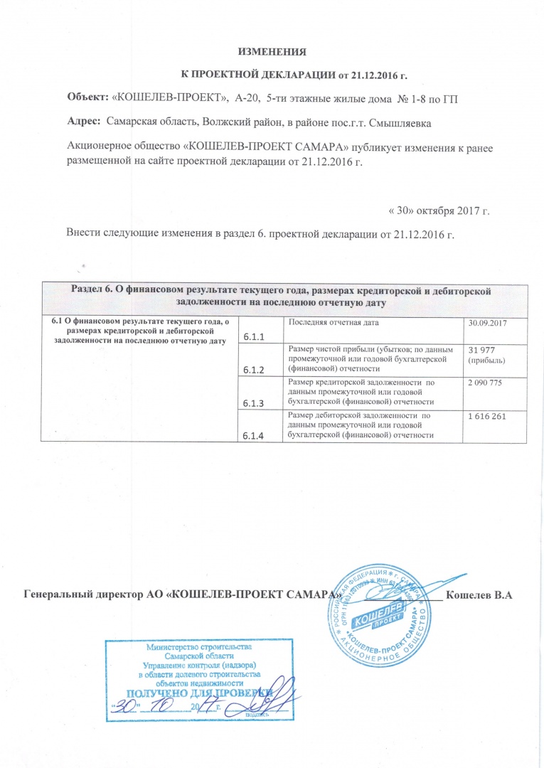 Изменения к ПД строительной очереди А-20 от 30.10. о фин.результат