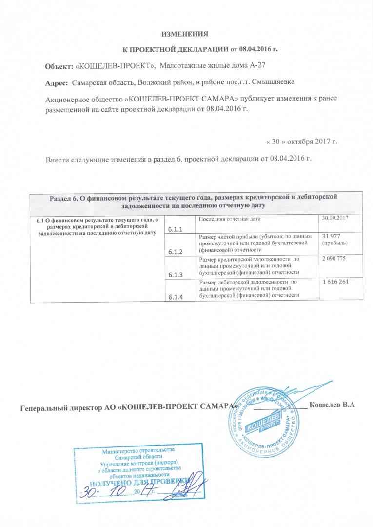 Изменения к ПД строительной очереди А-27 от 30.10. о фин.результате