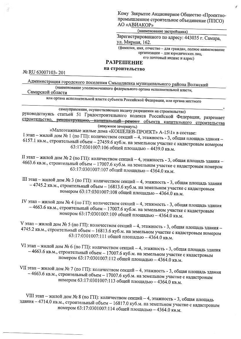 Разрешение на строительство Малоэтажные жилые дома "КОШЕЛЕВ-ПРОЕКТ", А-15/1, от 29.12.2014г.