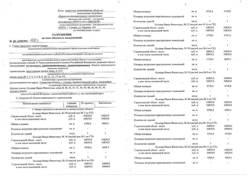 Разрешение на ввод объекта в эксплуатацию "Малоэтажные жилые дома, А-14.1" жилые дома: 2-6, 8-12, 17 по ГП от 30.12.2013г.