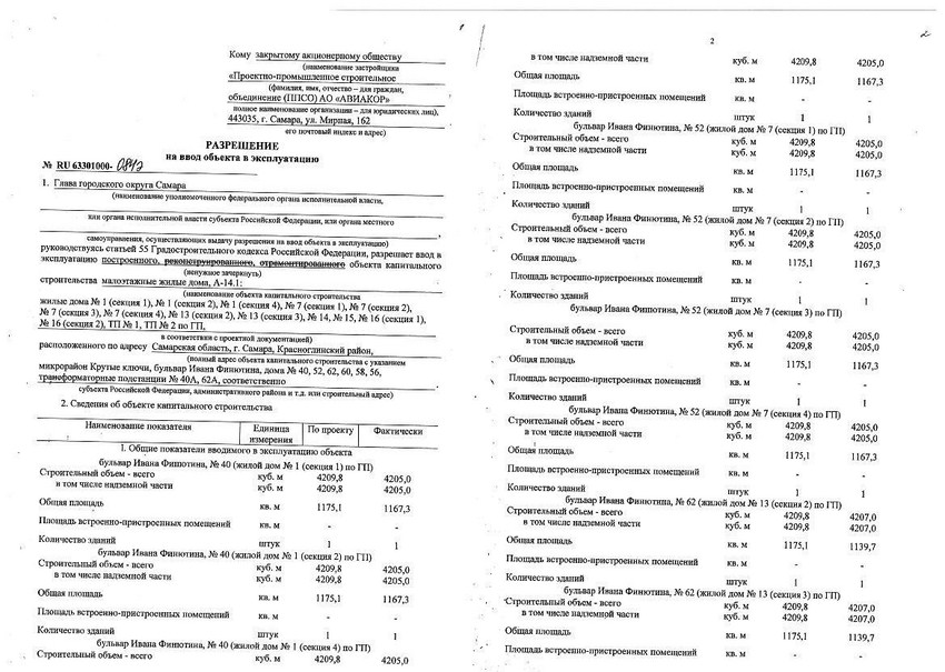Разрешение на ввод объекта в эксплуатацию "Малоэтажные жилые дома, А-14.1" жилые дома: 1 (сек. 1,2,4), 7, 13 (сек. 2,3), 14, 15, 16 (сек. 1,2) по ГП от 27.12.2013г.