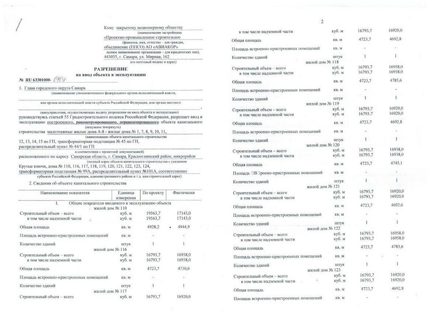 Разрешение на ввод объекта в эксплуатацию Малоэтажные жилые дома, А-8: жилые дома: 1,7-15 по ГП от 25.12.2012г.