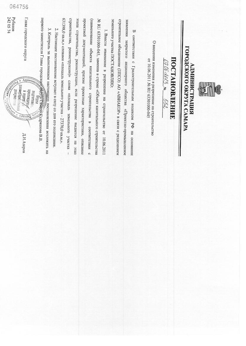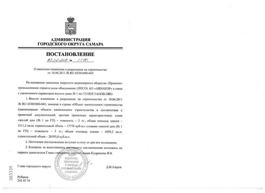 Разрешение на строительство объекта Малоэтажные жилые дома, гаражи-стоянки от 10.06.2011г.