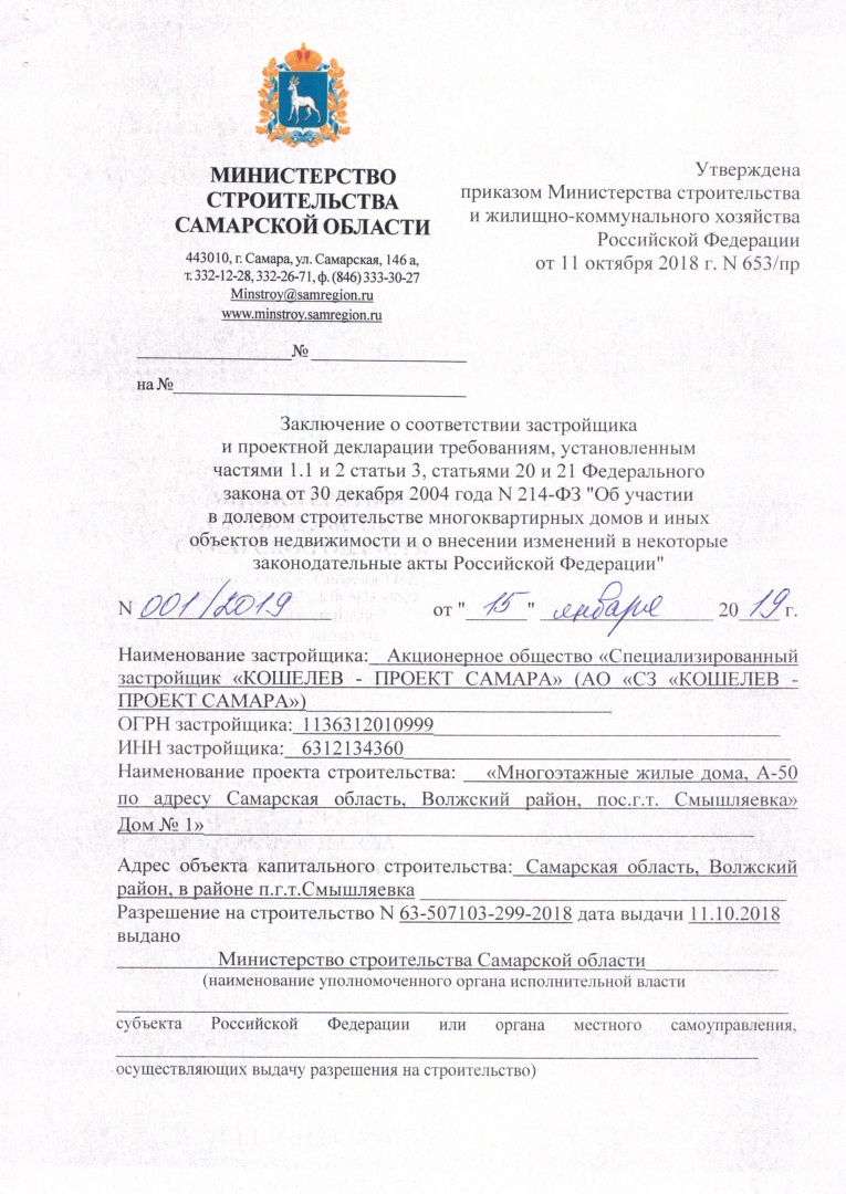 Заключение № 001/2019 от 15.01.2019г. дом 1