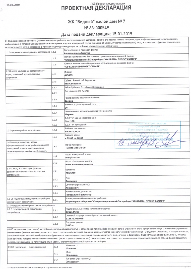 Проектная декларация "Многоэтажные жилые дома, А-50" дом 7 от 15.01.2019г.