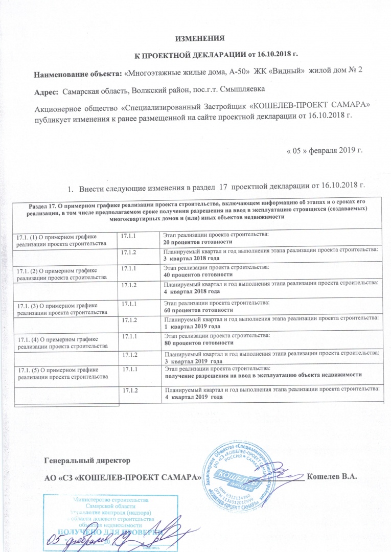 Изменения к проектной декларации объекта "Многоэтажные жилые дома, А-50" дом 2 от 05.02.2019