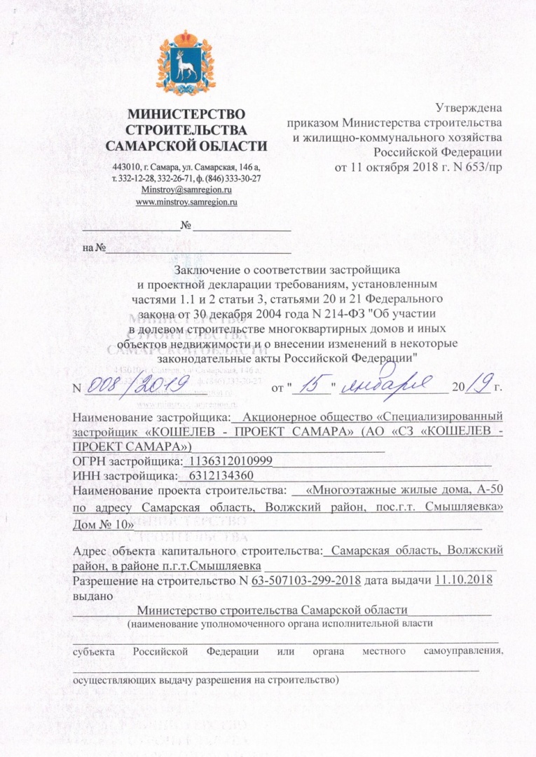 Заключение № 008/2019 от 15.01.2019г. дом 10