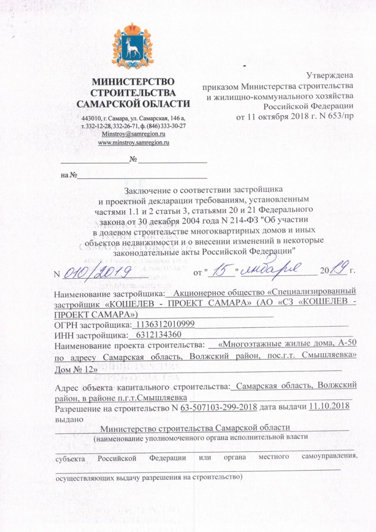Заключение № 010/2019 от 15.01.2019г. дом 12