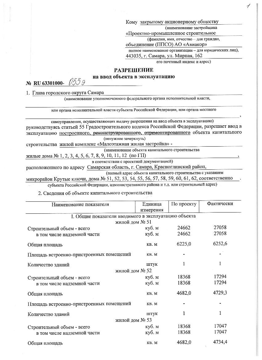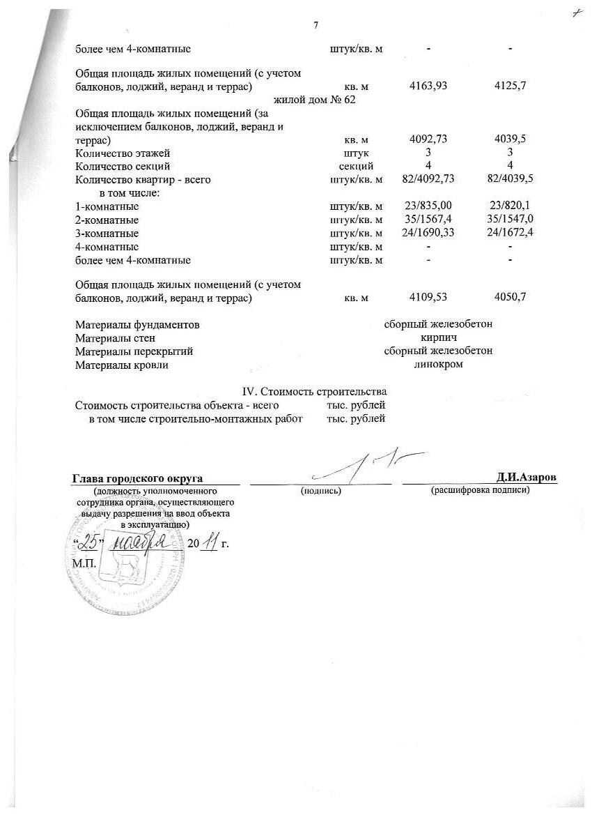 Разрешение на ввод объекта в эксплуатацию жилого комплекса "Малоэтажная жилая застройка А-3" жилые дома №№ 1-12 по ГП от 25.11.2011г.