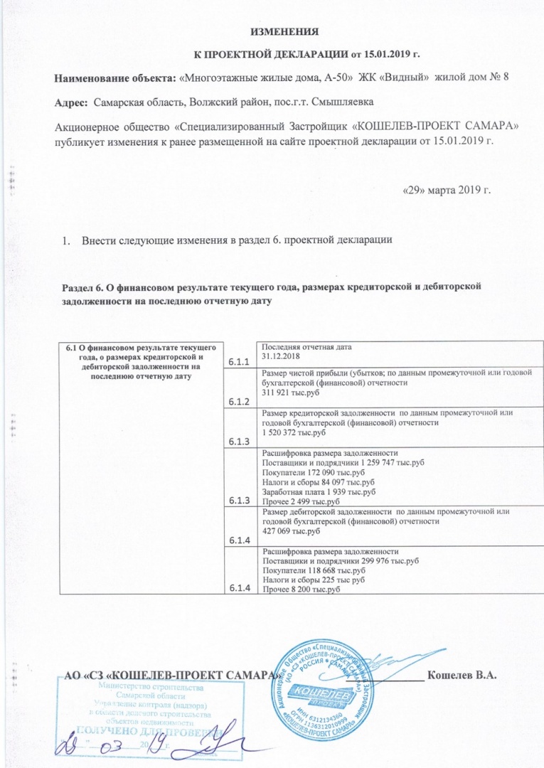 Изменения к проектной декларации объекта "Многоэтажные жилые дома, А-50" дом 8 от 29.03.2019