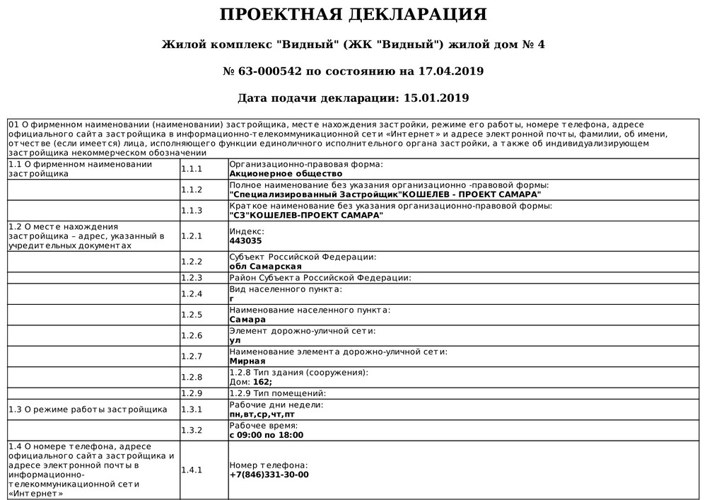 Проектная декларация (ЖК Видный) жилой дом №4 редакция от 17.04.2019г.